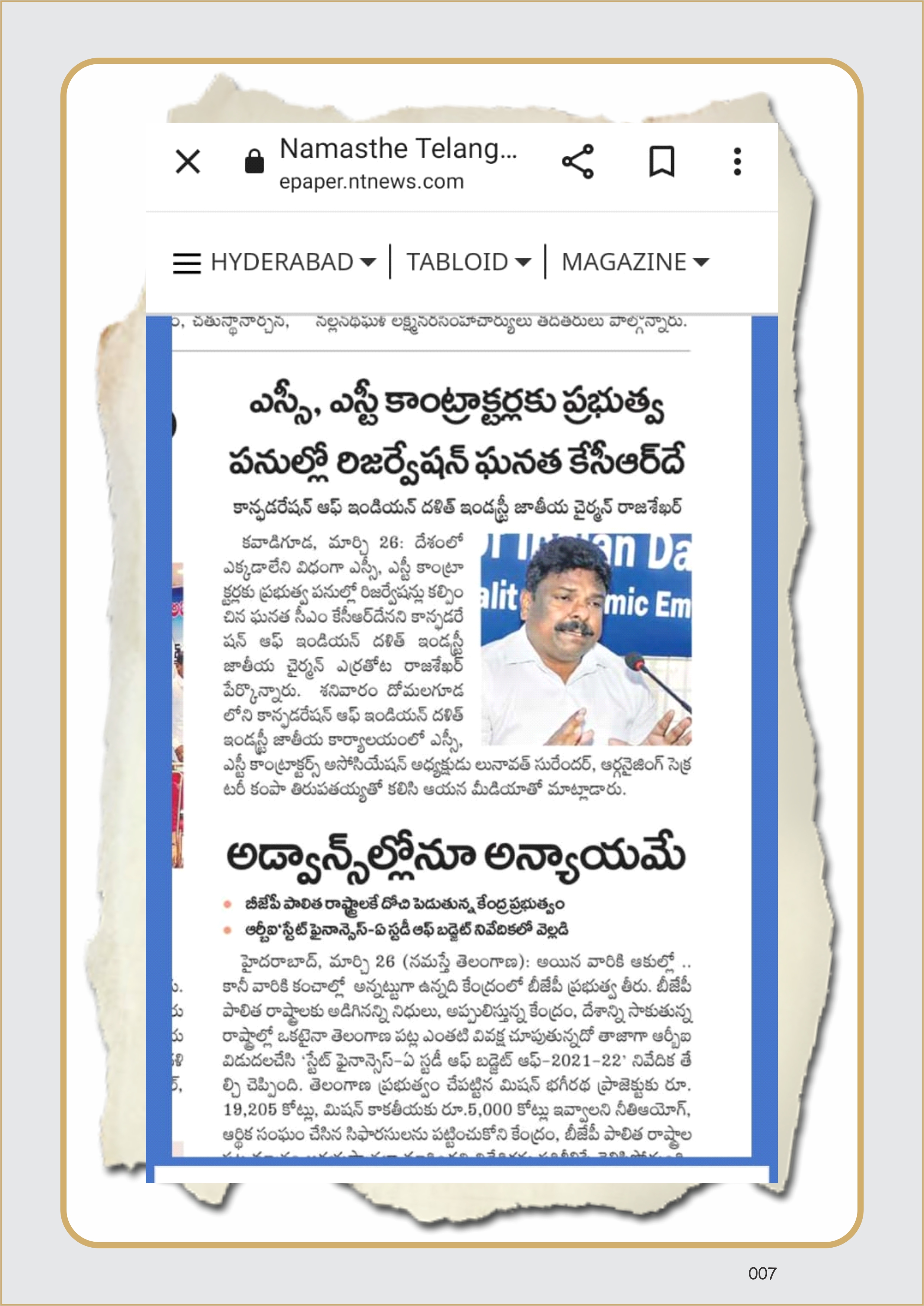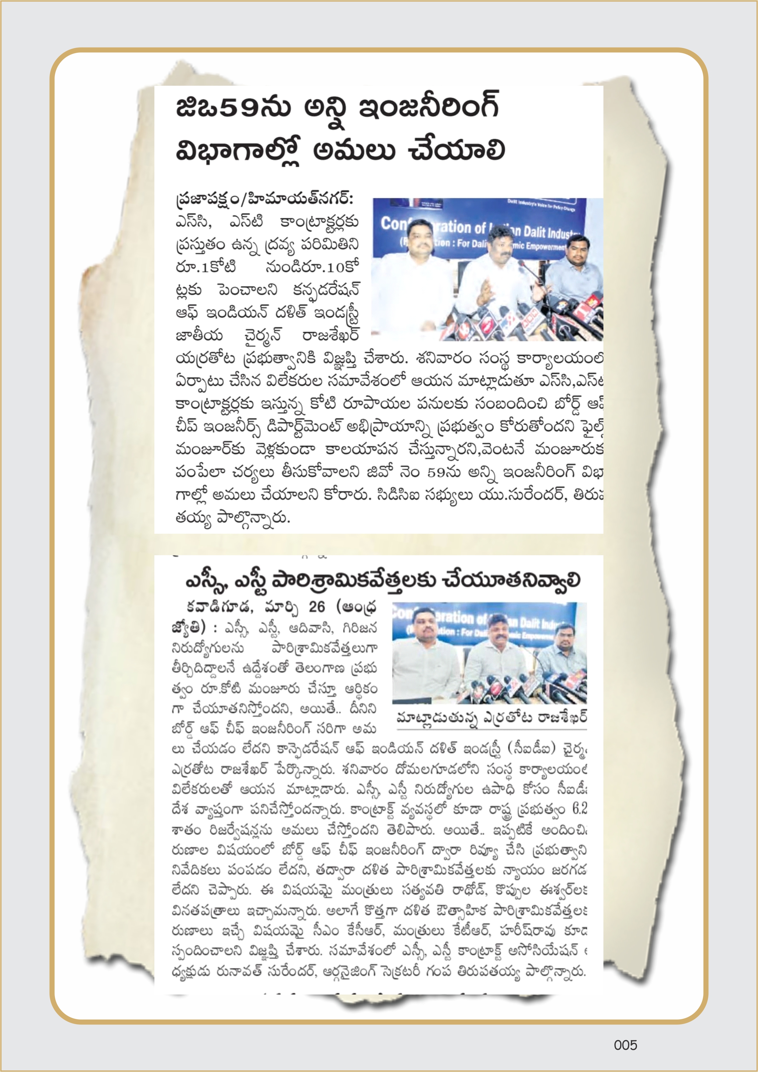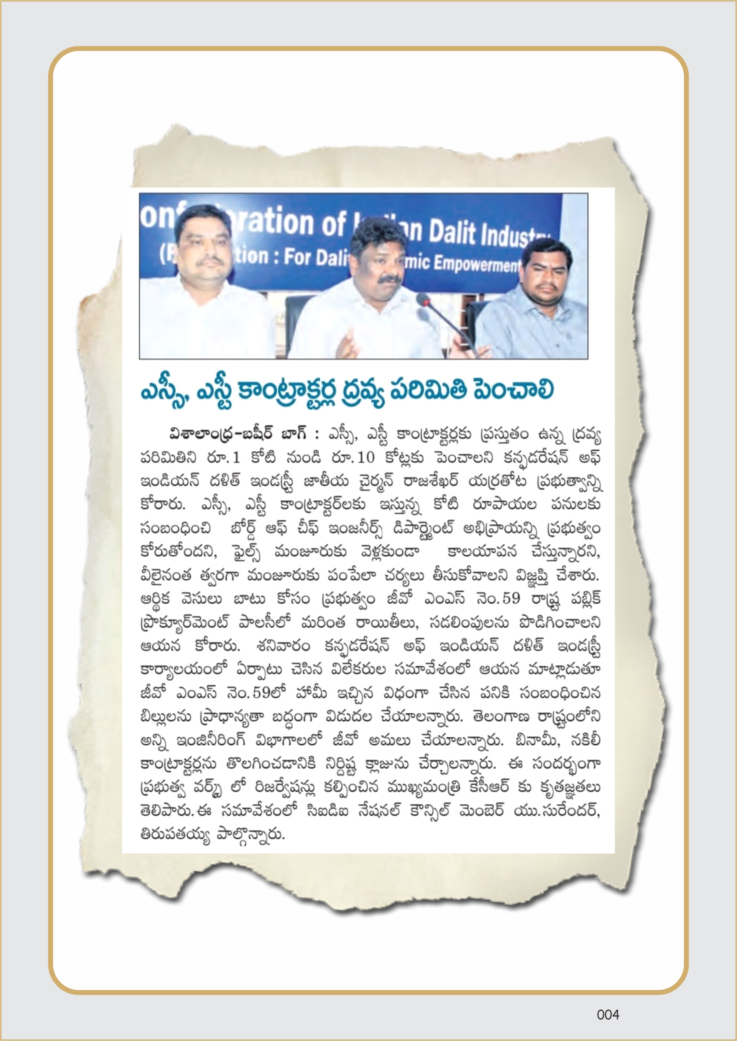 CIDI has organized a press conference on 26-03-2022, on the subject matter of Economic empowerment of SC/ST’s : further concessions in the G.O.Ms.No.59 of I&CAD (Reforms : PW) Dept., dt: 21.05.2018 of the Government of Telangana.